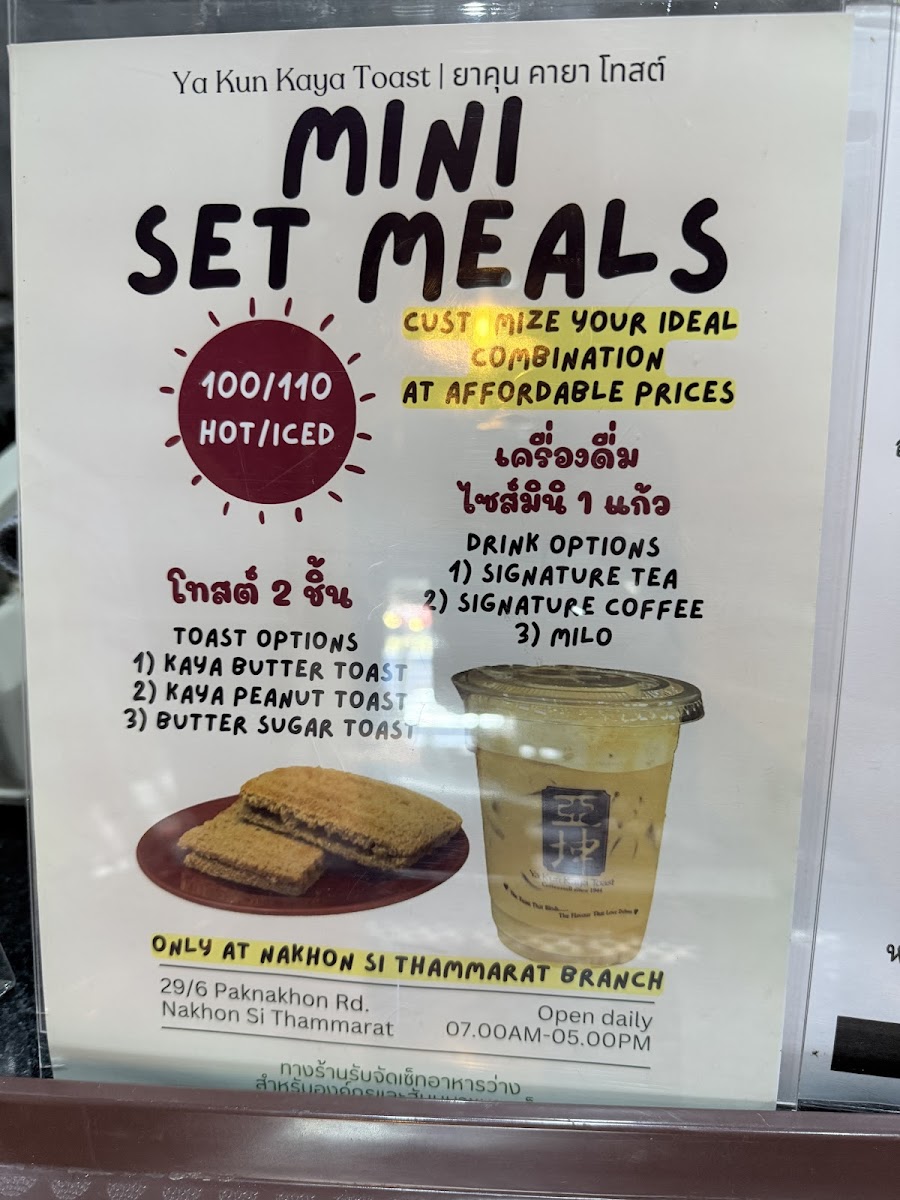 Welcome to Yakun Kaya Toast - ยาคุน คายา โทสต์ in Nakhon Si Thammarat, where comfort meets culinary delight. Located at 29, 6 Pak Nakhon Rd, this cozy spot is a haven for breakfast enthusiasts. The star of the menu is undoubtedly the signature kaya toast, praised for its crispy texture and rich fillings, including velvety butter and creamy peanut butter. Customer reviews rave about the toast's divine pairing with soft-boiled eggs, creating an unforgettable flavor experience.